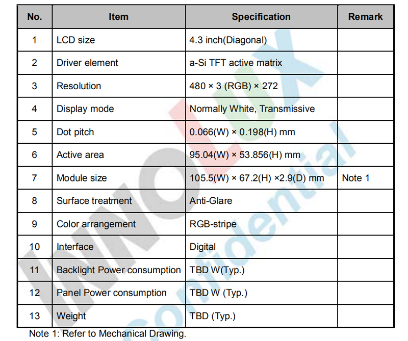品名:   4.3寸群創原裝屏